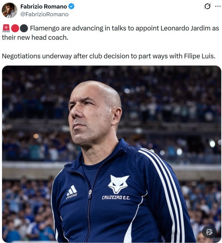 报道称弗拉门戈在决定与主帅费利佩·路易斯分道扬镳之后,一直在与雅尔丁进行谈判。